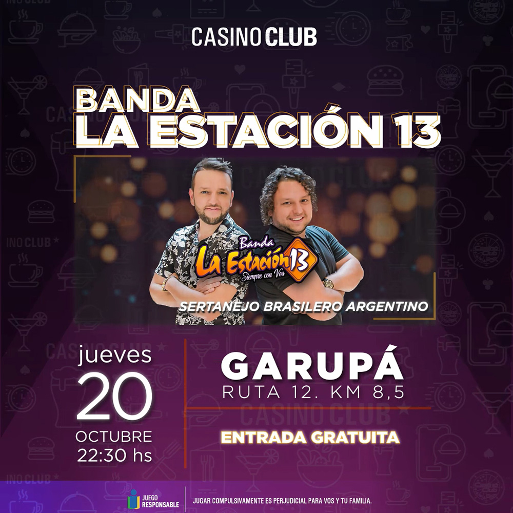 Casino Club Garupá – Jueves 20 desde las 22.30 – Banda La Estación 13