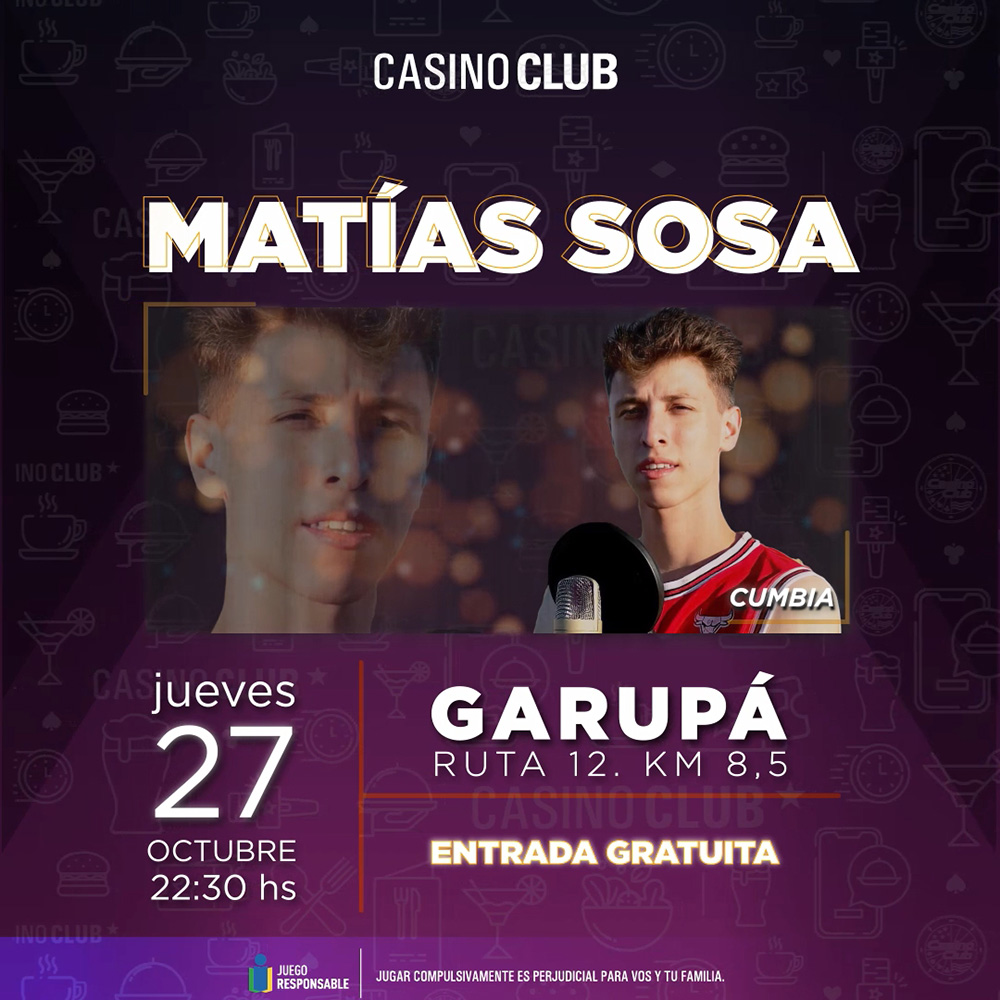 Casino Club Garupá – Jueves 27 desde las 22.30 – Matías Sosa y su Grupo