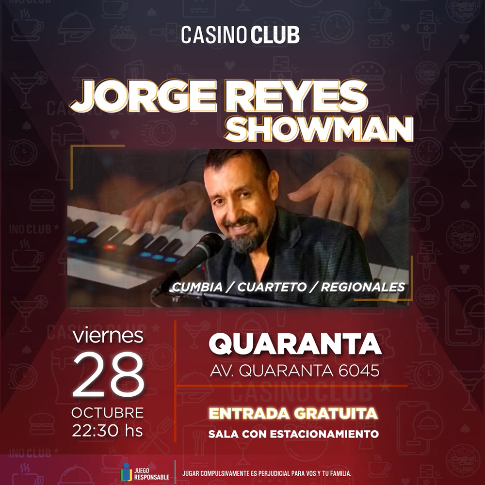 Casino Club Quaranta – Viernes 28 desde las 22.30 – Jorge Reyes Showman