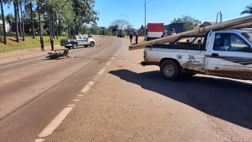 Según señala el parte policial un hombre de 54 años circulaba a bordo de una Toyota Hilux 4×2 por la ruta nacional 14 sentido Sur-Norte y cuando realizó una maniobra para ingresar a la calle El Guatambú colisiona con una motocicleta Zanella C150 RX, conducida por un sujeto de 34 años quien circulaba por la R14 en sentido contrario.