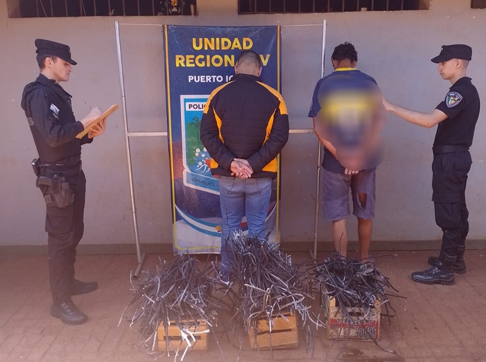 La Policía detuvo a dos hombres de 39 y de 21 años, en el marco de una investigación que se lleva adelante por el robo de más de 60 metros de cables, baterías, módulos de potencia y cobre, de una antena repetidora en la localidad de Comandante Andresito. Las aprehensiones, si bien se conocieron este sábado, una de ellas se produjo durante la semana y fueron realizadas por efectivos de la Comisaría local.