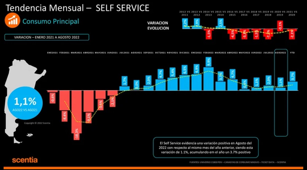 De hecho, un informe de Scentia Consulting también muestra que el consumo se mantiene en un terreno positivo: entre enero y agosto creció el 3,7%.