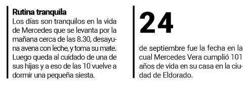 La familia Vera de Eldorado estuvo de festejo el sábado último, día en el que celebraron los 101 años de Doña Mercedes. La mujer nació en Paraguay, pero desde la década del 70 reside en Eldorado.