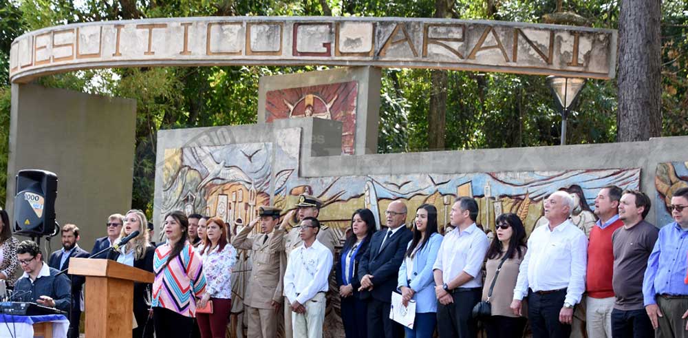 En el Centro de interpretación Jesuítico Guaraní se realizó el acto por los 145 años de la localidad, con la presencia de autoridades locales, provinciales, como el vicegobernador Carlos Arce y diputados, exintendentes, concejales, escuelas, representantes de la comunidad Mbyá Guaraní y vecinos.