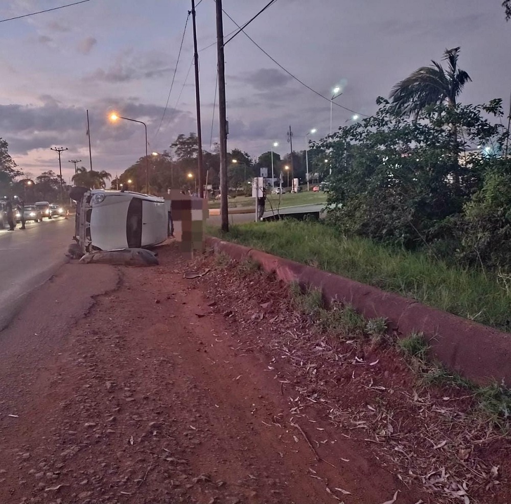 Según losprimeros datos recabados, por causas se tratan establecer, un Renault Kangoo conducido por un joven de 20 años colisionó con una motocicleta que circulaba sin dominio colocado. El rodado mayor terminó volcado sobre la arteria.