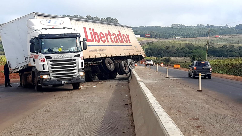 • Un camión que viajaba desde Misiones perdió su carga tras ceder la banquina en la RN 12