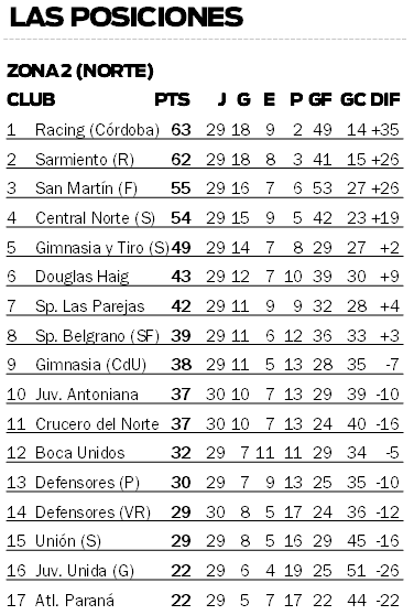 La fecha para la Zona Norte arrancaba anoche, con el imperdible duelo entre Sarmiento de Resistencia y Central Norte de Salta. El Decano es el escolta del grupo y una victoria lo dejará transitoriamente en la cima, al menos hasta que juegue Racing. En tanto que el Cuervo buscará ascender hasta el tercer escalón.