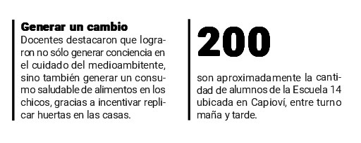 La docente resaltó que en los resultados positivos observados “sobre todo logramos cumplir con el cuidado del medioambiente y los objetivos pautados al inicio del proyecto. Entre los alumnos también varios empezaron huertas en sus casas”. Por otra parte, compartió que desde que iniciaron con la huerta “las mamás contaron que nunca querían comer las verduras, pero ahora si lo hacen porque les gustó todo lo que cocinamos en la escuela”.