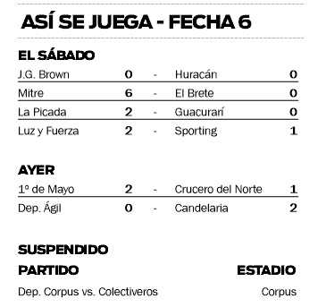 Con la disputa de otros dos encuentros, ayer tuvo continuidad la sexta y última fecha de la fase regular del Torneo Clausura “Cirilo Río” de la Liga Posadeña de Fútbol.