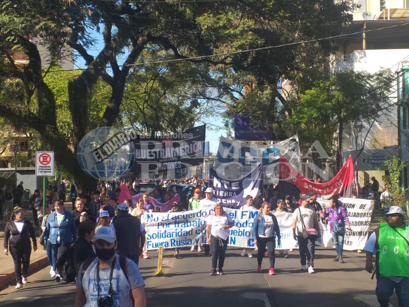 En el marco de una jornada de lucha nacional, este martes, en varios puntos de Misiones integrantes de la Corriente Clasista y Combativa (CCC) se concentraron en Posadas en la intersección de las avenidas Mitre y Uruguay, y desde allí marchan hacia la Casa de Gobierno donde tienen previsto entregar un petitorio donde expuso varios puntos que son necesarios concretar para mejorar la calidad de vida de los trabajadores..