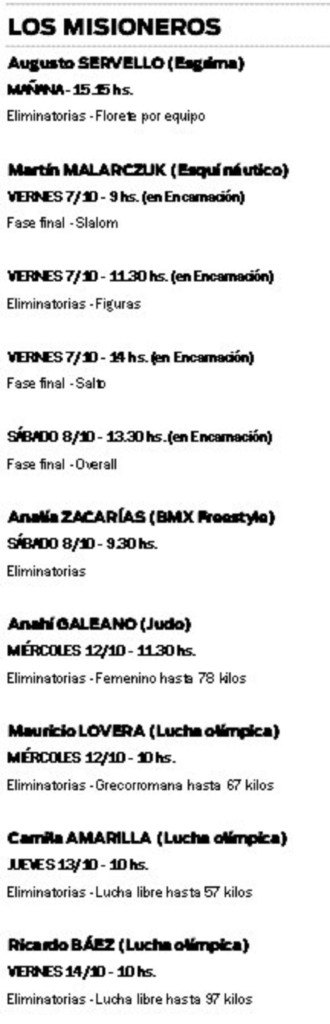 Tras la segunda y última intervención del esgrimista, el viernes será el turno del apostoleño Martín Malarczuk, quien competirá en esquí náutico y con el enorme extra de hacerlo nada más y nada menos que frente a la avenida Costanera de Encarnación, en pleno río Paraná y frente a los ojos de los posadeños. Malarczuk tendrá actividad tanto el viernes como el sábado venideros.
