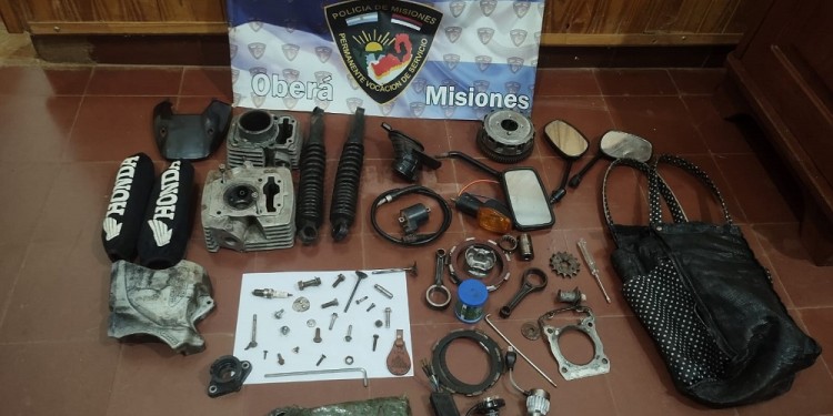 Todo comenzó con el robo de una motocicleta denunciado en la sede policial de la localidad de Panambí por parte de una joven de 23 años. Acto seguido, en un trabajo en conjunto, que lo se llevó adelante junto a efectivos de la Comisaría de Los Helechos, este miércoles personal policial detuvo a un joven de 21 años y le secuestraron varias partes de motocicleta.