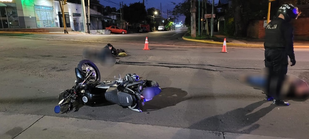 Por causas que se tratan de establecer, una motocicleta que iba con dos ocupantes mayores de edad colisionó contra un vehículo conducido por un hombre de 45 años en la zona de Av Urquiza y Av. Lavalle.