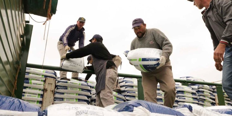Apuntó que “a partir de ahora se entrará en un ritmo de 20 camiones por semana. En principio se entregan bolsas de hasta 10 hectáreas por productor. Son 80 bolsas de fertilizantes de 25 kilos por productor”.