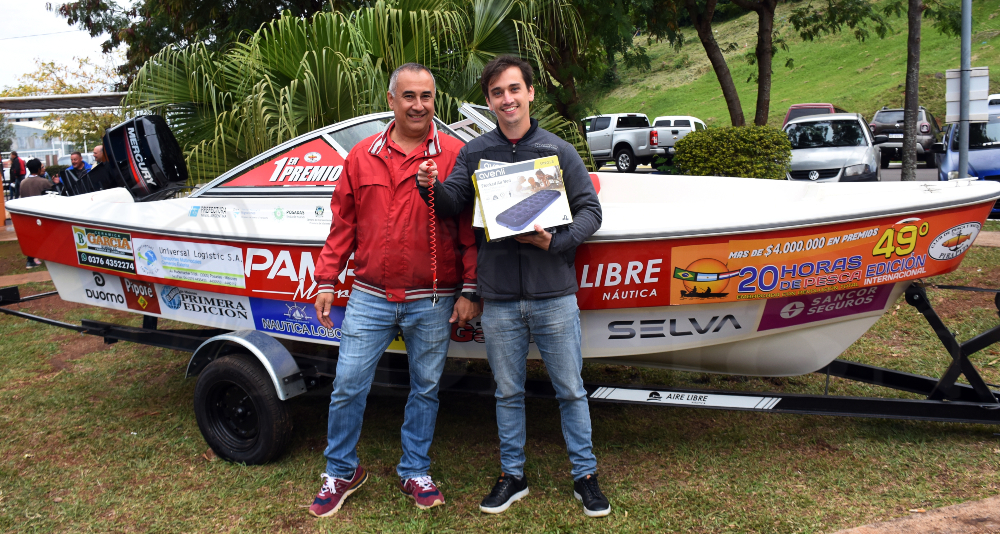 Tras la entrega de premios a los diez mejores equipos, se llevó a cabo también el sorteo más esperado, el de la lancha Pampa Marín 520 con motor Mercury Elo Súper de 40 Hp. Y el azar favoreció a los posadeños Matías Falero y Fernando Tejedor, debutantes en el certamen.