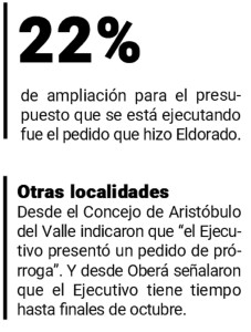 En tanto, el secretario de Hacienda de Eldorado, Sebastián Caffetti mencionó que “para el presupuesto de 2022 el presupuesto fue de $1.800 millones y ahora se presentó en el Concejo Deliberante un proyecto de ampliación de presupuesto de un 22%, que representa unos $420 millones aproximadamente”.