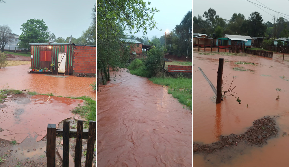 Gran parte del barrio Quintas bajas de Comandante Andresito quedó bajo agua a raíz de las fuertes precipitaciones registradas entre la noche del lunes y la mañana de hoy martes, que ocasionaron la crecida del arroyo Doce, que atraviesa dicha zona urbana y que desemboca en el arroyo San Francisco.