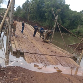 Según se informó personal del Ejército aguarda que baje el caudal para poder proceder a las tareas de mantenimiento del viaducto que presenta roturas en los encastres metálicos y dos perforaciones en las plataformas flotantes.