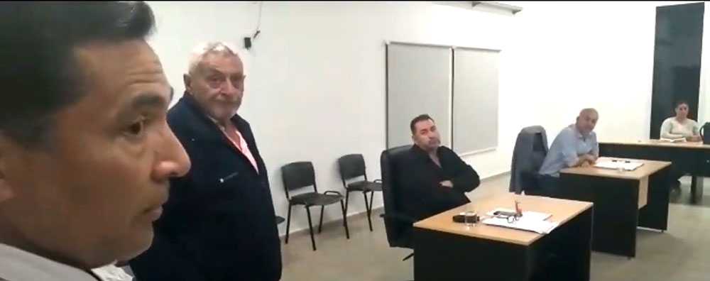 En medio de la sesión los funcionarios del intendente llegaron acompañados por unos 20 remiseros, interrumpiendo la sesión y pidiendo explicaciones de porqué no se le había informado al intendente sobre esa iniciativa.