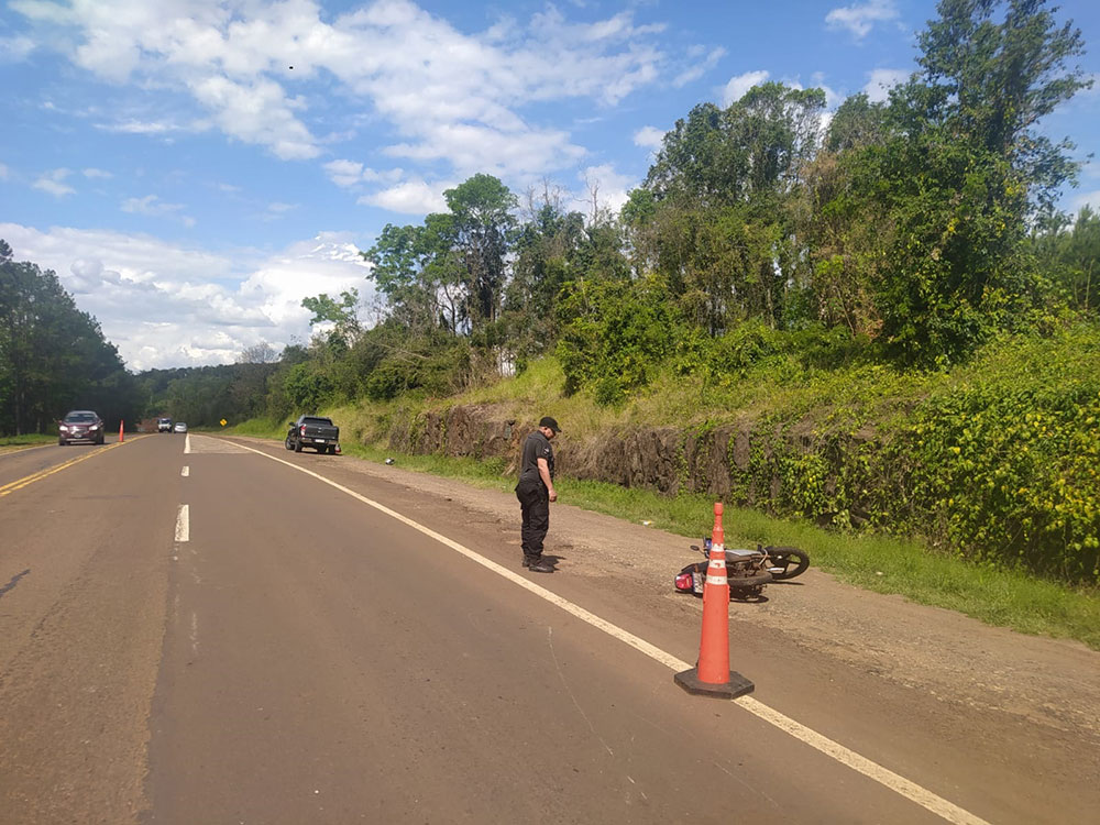 Según los primeros datos que están siendo investigados por la Policía, alrededor del acceso la colonia Gahurapé-Mí un conductor de 31 años al mando de una motocicleta circulaba en dirección Garuhapé – El Alcázar cuando por motivos que aún se desconocen, impactó contra el margen posterior izquierdo de una camioneta Ford, conducida por un hombre de 32 años quien, además, se desplazaba en el mismo sentido sobre la arteria.