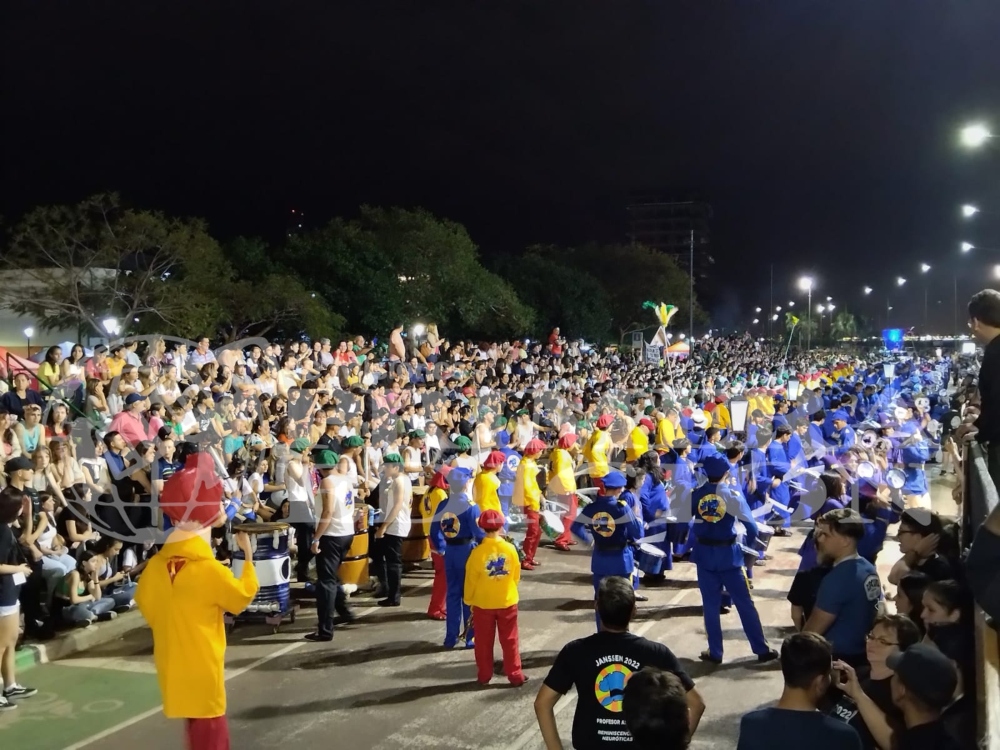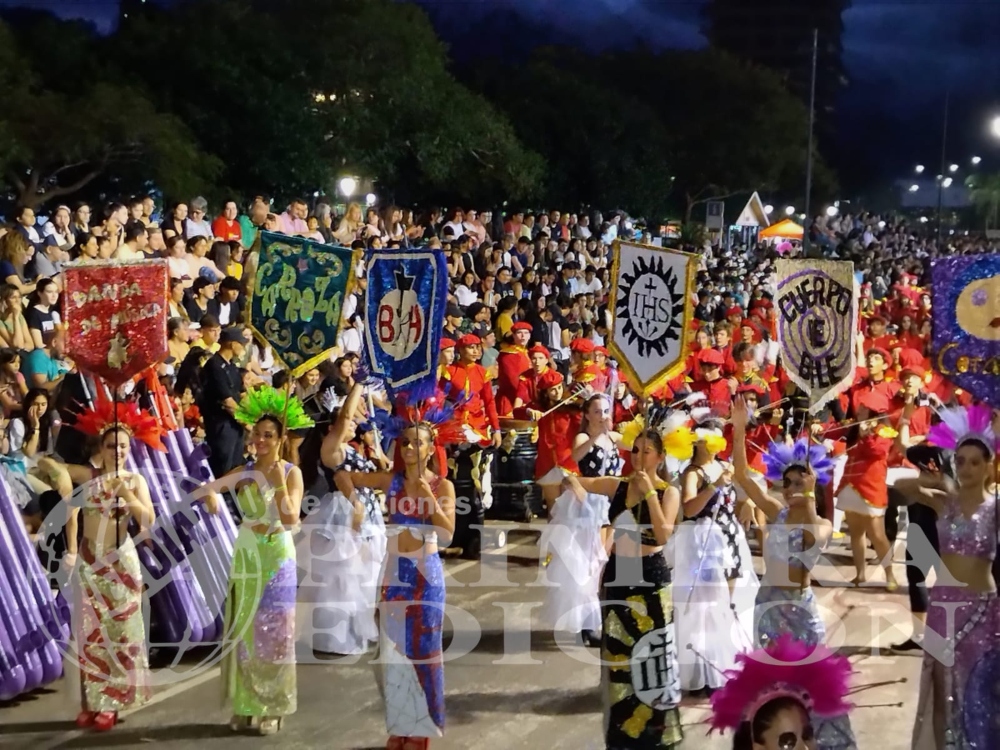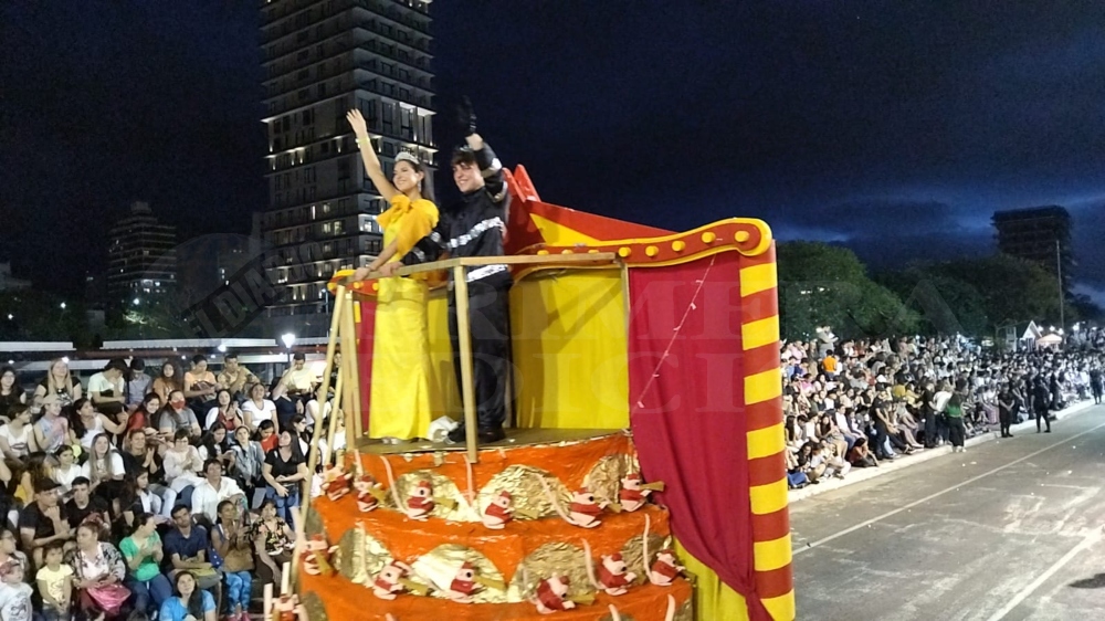 La segunda noche de la Estudiantina comenzó a tiempo como estaba previsto. A las 18 horas comenzó su presentación el Instituto Santa Catalina con su temática “La tierra de las hadas” y el Roque González hizo lo suyo con ” Divina Comedia”.