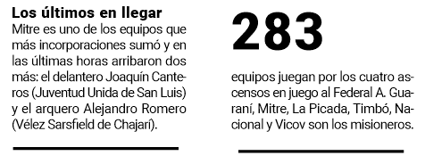 Mitre, por su lado, a priori parece mejor armado. Es que José María Bernal arrancó con el armado del equipo incluso antes que inicie el Clausura capitalino y durante las últimas semanas incorporó importantes refuerzos. Los últimos en llegar fueron el delantero Joaquín Canteros (Juventud Unida de San Luis) y el arquero Alejandro Romero (Vélez Sarsfield de Chajarí).