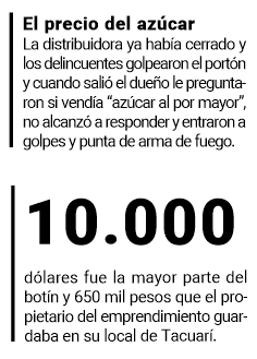 Las imágenes que arrojaron los registros fílmicos del atraco permitieron identificar a la motocicleta utilizada por los dos delincuentes para llegar hasta la distribuidora sobre avenida Tambor de Tacuarí y en menos de dos minutos apoderarse del botín. Golpearon al propietario, quien en primera instancia entregó la suma de 150 mil pesos que estaban sobre una mesa, porque se disponía a realizar el arqueo de caja porque terminaba las actividades del día.