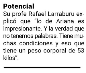 Aunque, todavía resta definir si la misionera competirá en la categoría de hasta 55 o 59 kilos, Ariana formará parte de la delegación argentina en la categoría Sub-15.