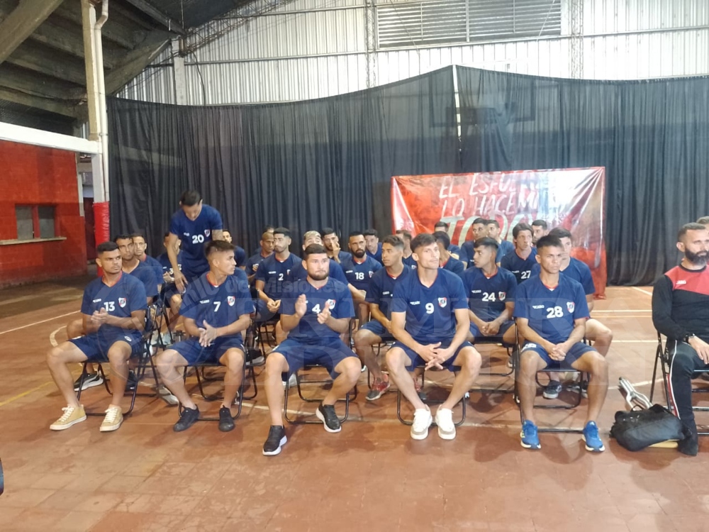 La tradicional camiseta blanca con la franja roja, más la azul con la banda blanca son las que lucieron los futbolistas en el acto que se llevó a cabo en el tinglado de la institución, ubicada en el corazón de Villa Sarita.
