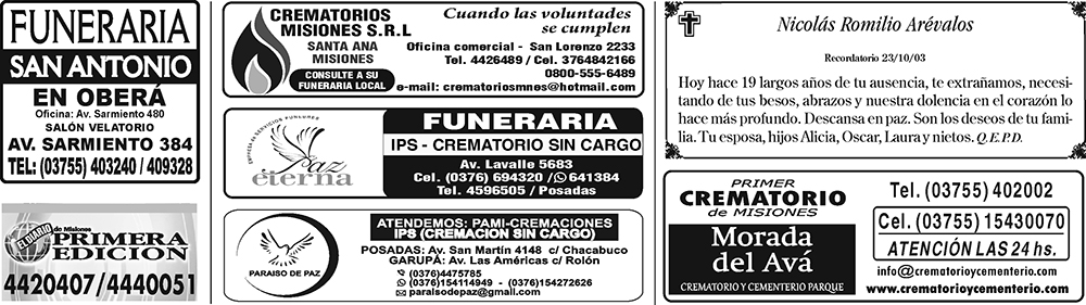 Fúnebres del domingo 23 de octubre de 2022