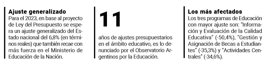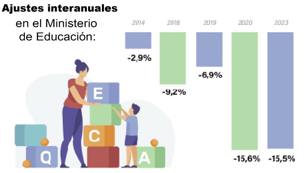 Para el 2023, en base al proyecto de Ley del Presupuesto se espera un ajuste generalizado del Estado nacional del 6,8% (en términos reales) que también recae con más fuerza en el Ministerio de Educación de la Nación.