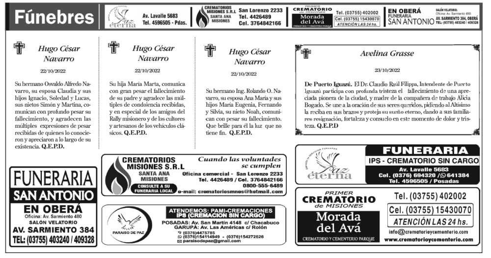 Fúnebres 24-10-2022