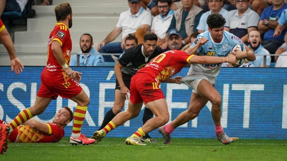 CON TODA LA FURIA. Martín, el último sábado, dejando rivales en el camino en el debut con el Aviron Bayonnais de Francia.