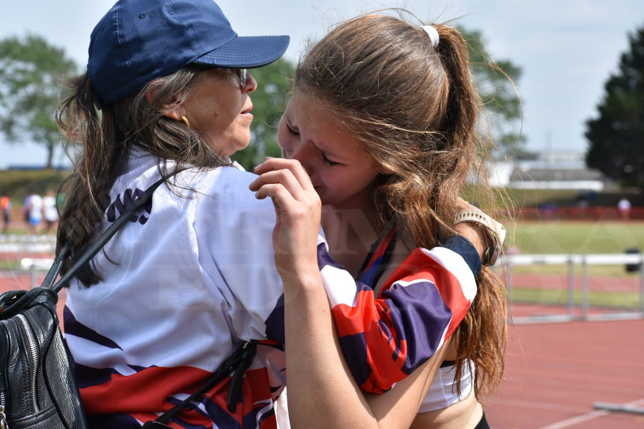 No todo fue color de rosa en el primer día de los JNE: una imagen conmovedora que pudo captar PRIMERA EDICIÓN fue la de la misionera Carla Biallowons entre lágrimas abrazando a su entrenadora. La atleta de Andresito tuvo un infortunio en la pista mientras participaba en Salto con Vallas que la dejó muy atrás en la lucha y la privó de obtener una medalla.
