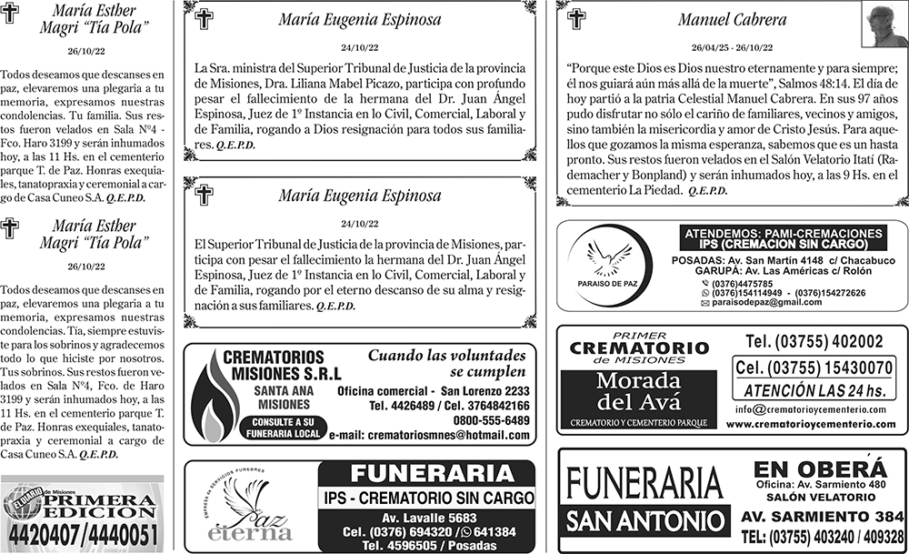 Tags: Fúnebres 27-10-2022