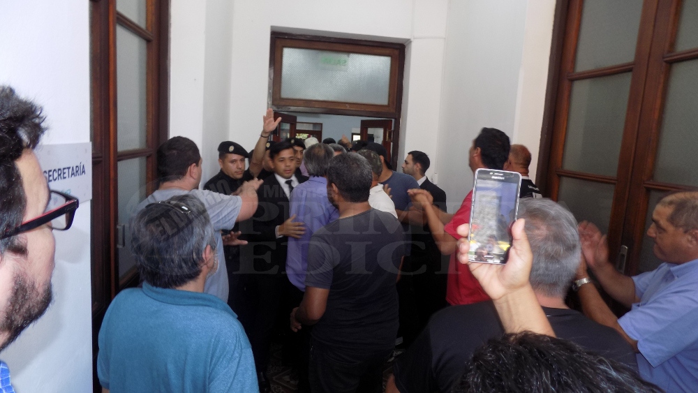 Después de 20 minutos de forcejeos con la policía y personal de seguridad se habilitó el ingreso de 5 delegados para discutir con los funcionarios de concejales las reformas que los trabajadores del volante rechazan