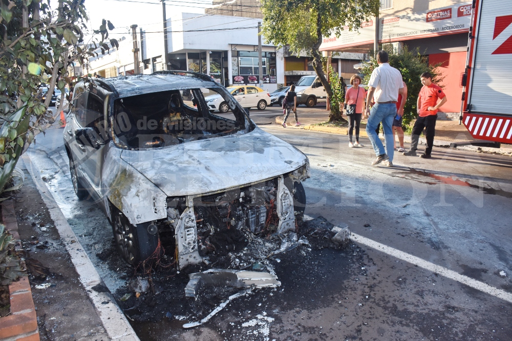 El vehículo Jeep modelo Renegade es de fabricación estadounidense y no se pudo establecer el motivo del fuego, sólo que se inició en el sector del motor y el daño superó el 50 por ciento de la estructura.
