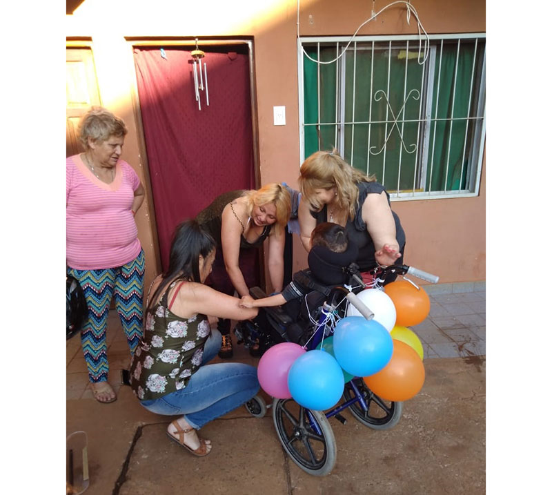 “Conocimos a Loan por una vecina que vive cerca. Somos un grupo de gente trabajadora. Algunos son de Buenos Aires, otros de Iguazú, de Santa Cruz, y ahora se sumó Córdoba. Nos pusimos en campaña para tratar de conseguir la silla postural. En cuestión de una semana la publicación que hicimos recorrió todo el país. Finalmente ayer a la mañana llegó la silla y a la tarde ya estábamos entregándosela a su madre, quien la recibió con alegría y emoción”, relató Samanta. También le donaron todo tipo de insumo, como leche, pañales, y ropa.
