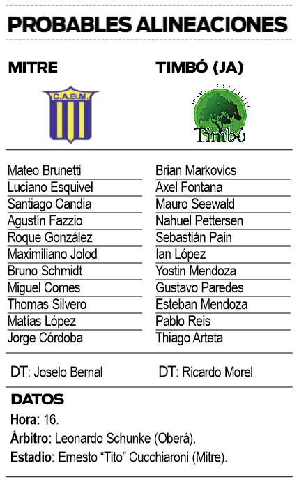 Para Timbó la situación tampoco es sencilla: después de la derrota como anfitrión ante el Tren del Oeste, el entrenador Ricardo Morel intenta mover las fichas para encontrar el juego y quedarse con tres puntos tan necesarios como lo serán para Mitre. En ese duelo de urgencias es que reside la expectativa de esta tarde en el barrio Rocamora. Es que el ganador tendrá margen para seguir en la pelea, mientras que el perdedor la tendrá complicada de cara al futuro.