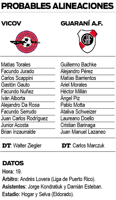 Luego de la postergación del domingo por las intensas lluvias, todo hace indicar que no habrá mayores inconvenientes para que esta tarde-noche el Deportivo Vicov reciba a Guaraní Antonio Franco, en el marco de la tercera fecha de la fase regular de la Zona 4 del Torneo Regional Federal Amateur de fútbol.