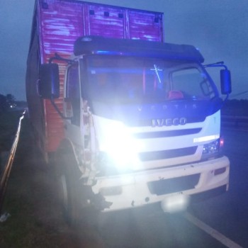 Ayer a las 5.30, un peatón fue atropellado por un camión Iveco de una empresa de gaseosas conducido por un joven de 27 años sobre ruta nacional 12 a la altura del kilómetro 1.356 frente al barrio El Lago de Candelaria.
