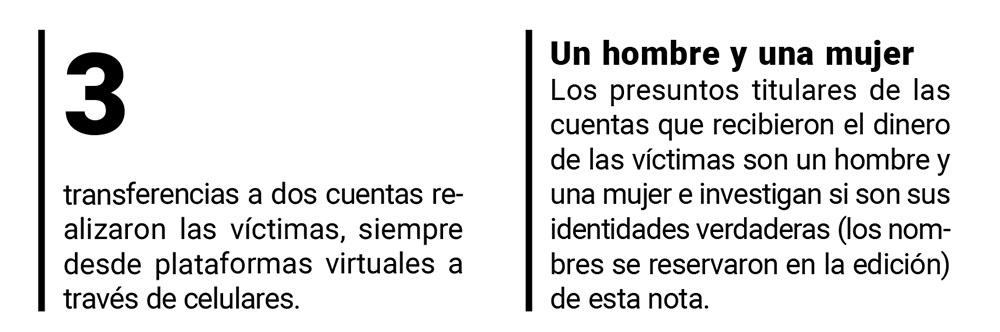 Una vez realizadas las transferencias, el denunciante dijo que se comunicó con las entidades bancarias en cuestión desde las cuales les comunicaron que se trataba de una presunta estafa y que dichas personas (a quienes había transferido su dinero) no figuraban como clientes.
