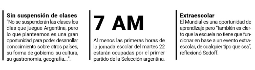 Según analizó el funcionario, “el Mundial de Fútbol es un acontecimiento social y deportivo de gran alcance y en el que la escuela no puede estar ausente. No se suspenderán las clases los días que juegue Argentina, pero lo que planteamos es una gran oportunidad para poder desarrollar conocimiento sobre otros países, su forma de gobierno, su cultura, su gastronomía, geografía… es una manera de la escuela de incluir la experiencia del Mundial en la agenda escolar”.