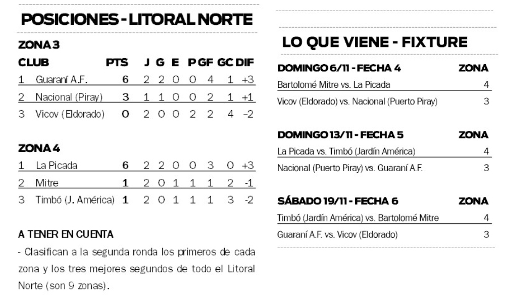 Se completó la tercera fecha de la fase regular de la Región Litoral Norte del Torneo Regional Federal Amateur de Fútbol y con el valioso triunfo logrado el pasado martes en Eldorado ante Deportivo Vicov por 2 a 1, Guaraní Antonio Franco se transformó en único líder e invicto de la Zona 4.