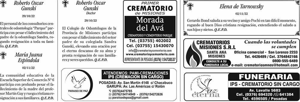 Fúnebres del Viernes 4 de Noviembre de 2022