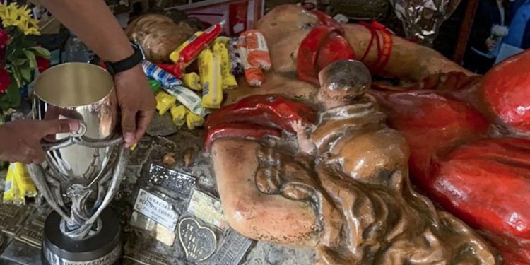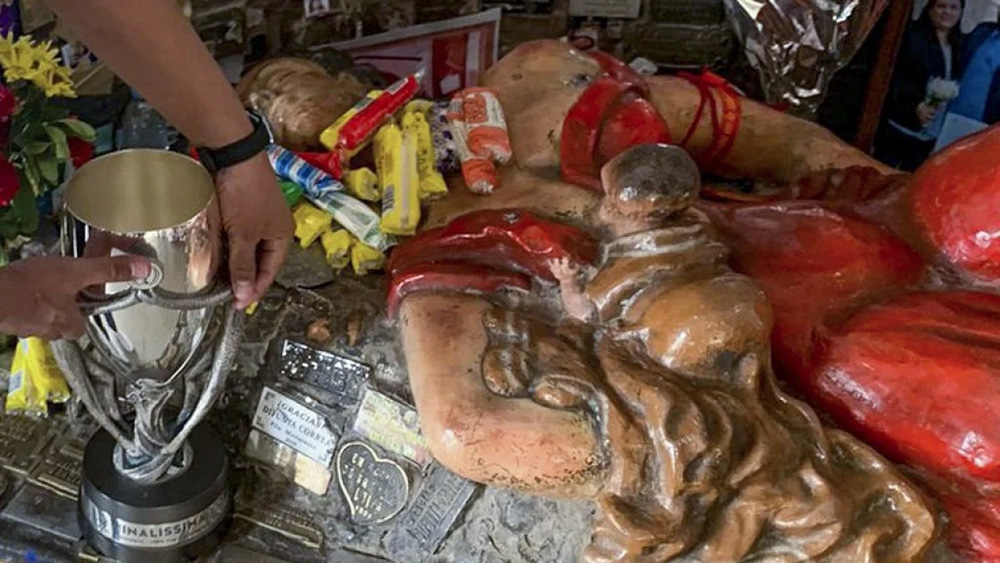 El presidente de la Asociación del Fútbol Argentino (AFA), Claudio “Chiqui” Tapia, volvió a visitar el santuario de la Difunta Correa, pero esta vez con el trofeo de la Finalissima que el conjunto nacional consiguió en junio pasado tras vencer a Italia, el campeón europeo.