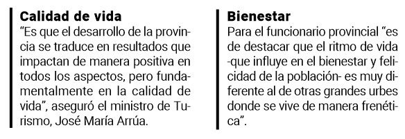 Cada parte de la provincia tiene algo distinto que ofrecer. Por eso Arrúa sostuvo en este sentido, que “es de destacar que el ritmo de vida -que influye en el bienestar y felicidad de la población- es muy diferente al de otras grandes urbes donde se vive de manera frenética.