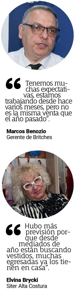 El gerente de Britches en Posadas, Marcos Benozio, detalló que los conjuntos de trajes dependiendo de las telas parten de los $36 mil, $59 mil y hasta los $99 mil. “Tenemos muchas expectativas, estamos trabajando desde hace varios meses, pero no es la misma venta que el año pasado. Nos estamos preparando pero tenemos pocas ventas, trabajamos con promociones con toda la parte bancaria, tenemos créditos, descuentos especiales, combos, el producto está, falta que la gente venga a comprar”, manifestó.
