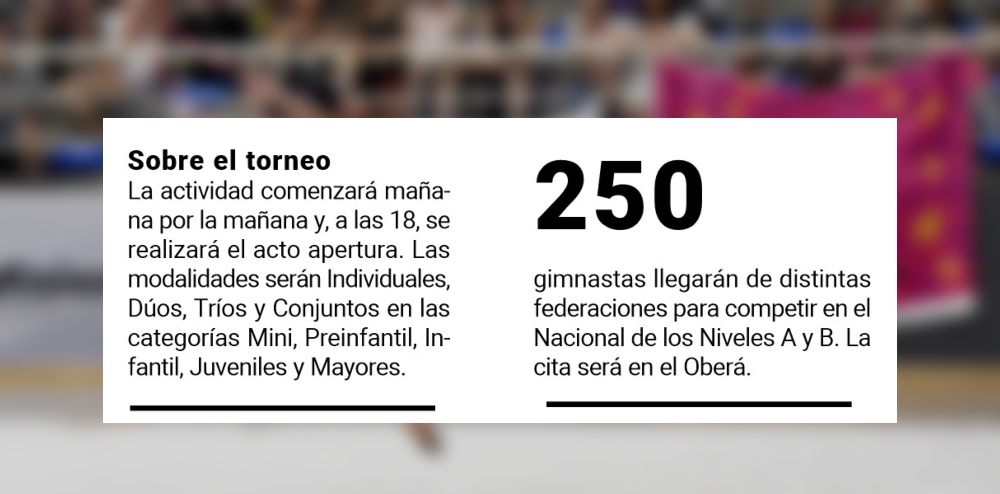 “El Nacional del Nivel A es de élite, es nivel de Selección. Van a estar presentes todas las gimnastas que representan al país en los torneos sudamericanos e internacionales”, dijo a EL DEPORTIVO la presidenta de la Federación Misionera de Gimnasia, Norma Thiel. “Tenemos una gimnasta misionera en ese nivel, Maira Luft de Puerto Rico, que va a estar presente. Es muy difícil estar en ese nivel”, agregó.