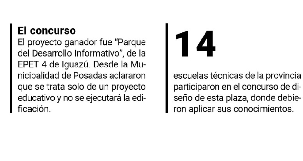 Durante la Expo Posadas Futura fueron 14 escuelas técnicas de Misiones las que presentaron un proyecto de plaza inteligente y sustentable. Finalmente, la EPET 4 de Puerto Iguazú resultó la ganadora con un diseño planificado para una plaza en Itaembé Guazú. Como parte del premio, la institución recibirá un millón de pesos, destinados a fortalecer el equipamiento de los talleres. Se trata de un proyecto educativo y de aplicación de conocimiento para los futuros egresados.
